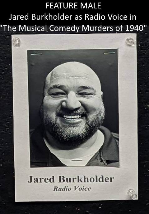 Jared Burkholder as Radio voice in “The Musical Comedy Murders of 1940”